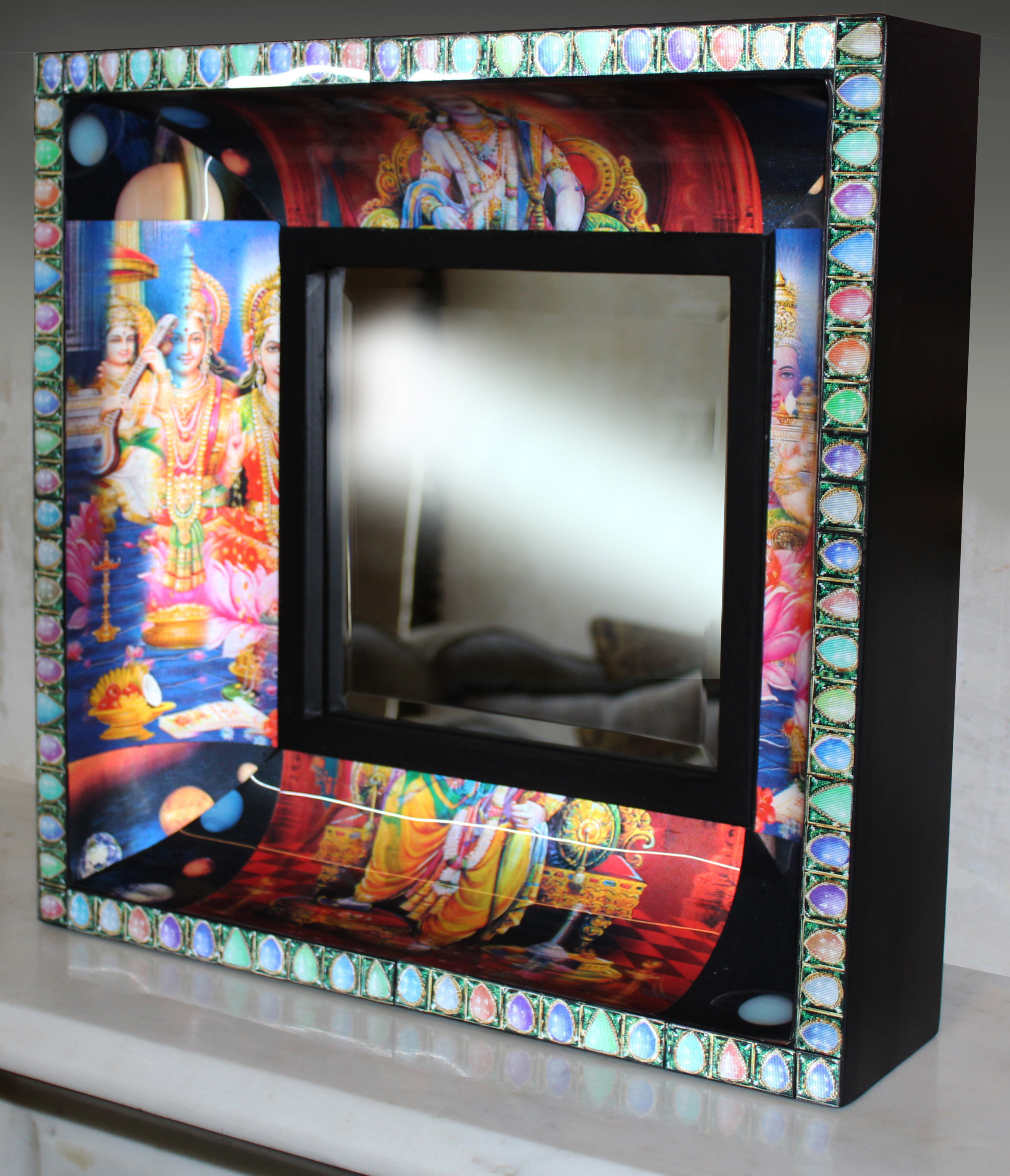 I was inspired by the old, grand movie palace in San Francisco named the Coronet. Its where I first saw Star Wars and the theater had a modernist Camelot vibe that I thought was beautiful. Unfortunately the theater was torn down and has been replaced with a retirement community. So I named this mirror in tribute to the swooping, sputnik, knight-and-fair-lady theater that stood there.
