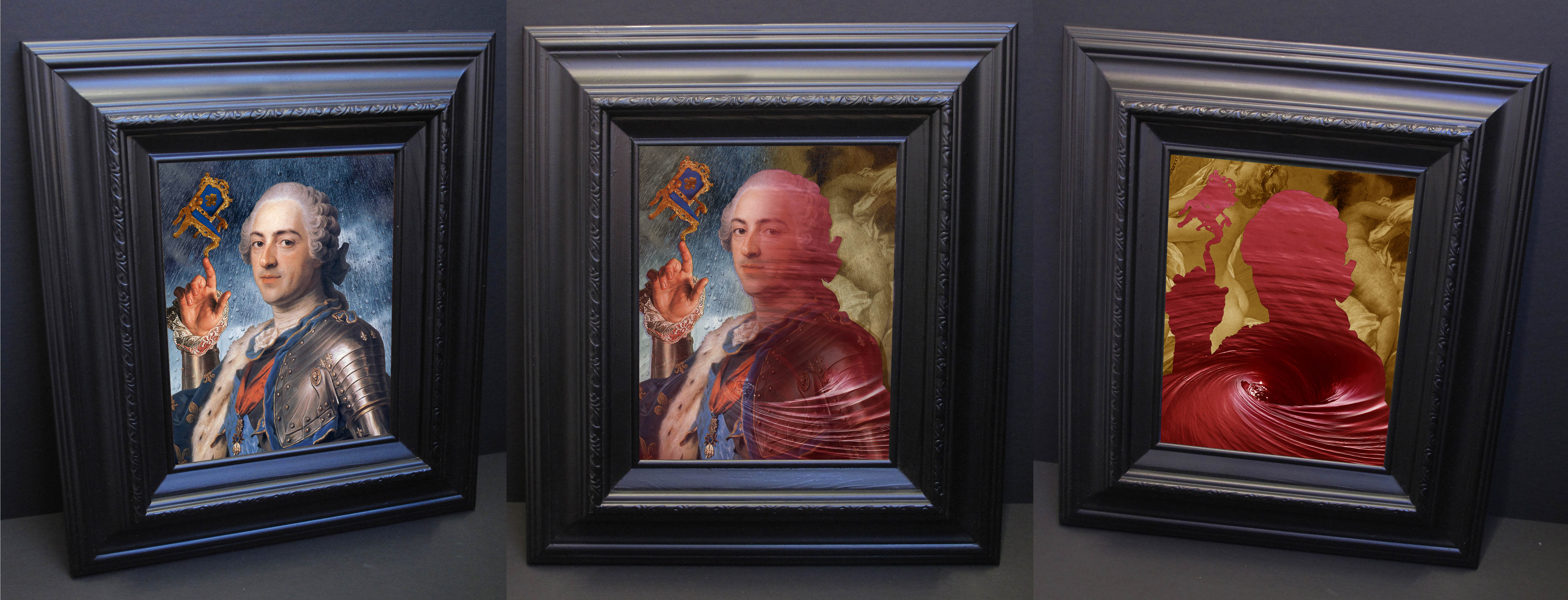 Tagged digital print, Enfilade Palazzo Venice Room Resin, Eyes Flip Lenticular Portraits Valois King Dynasty John, Flip Lenticular Portraits Valois Dynasty Henry, Flips, Ombré, resin